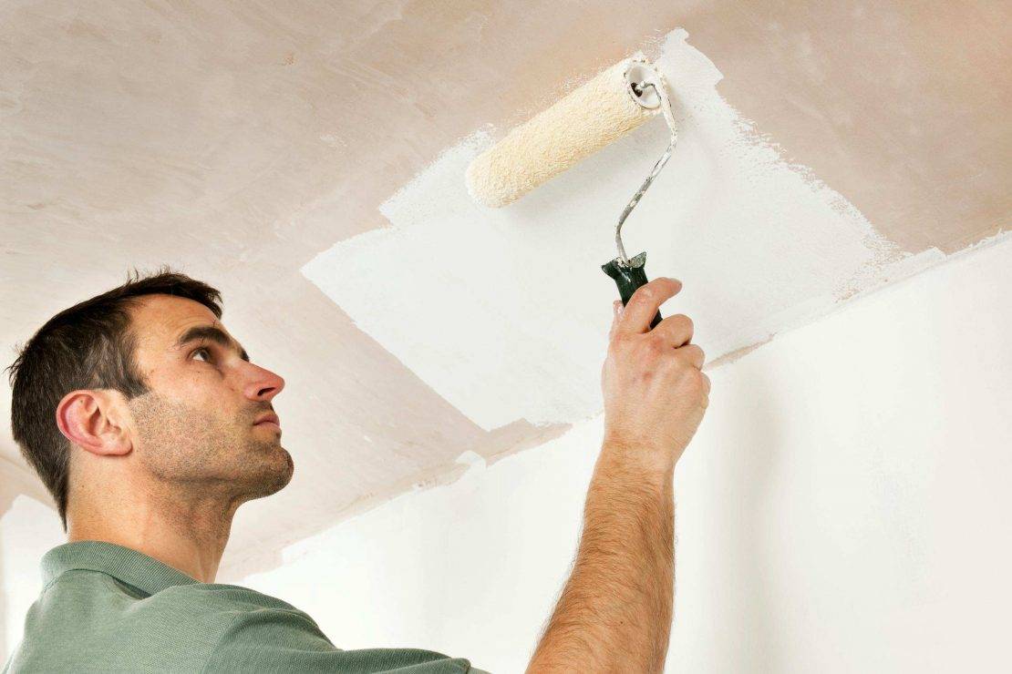 После подготовки основания выполняется покраска потолка в ванной. Работы ведем в таком порядке: