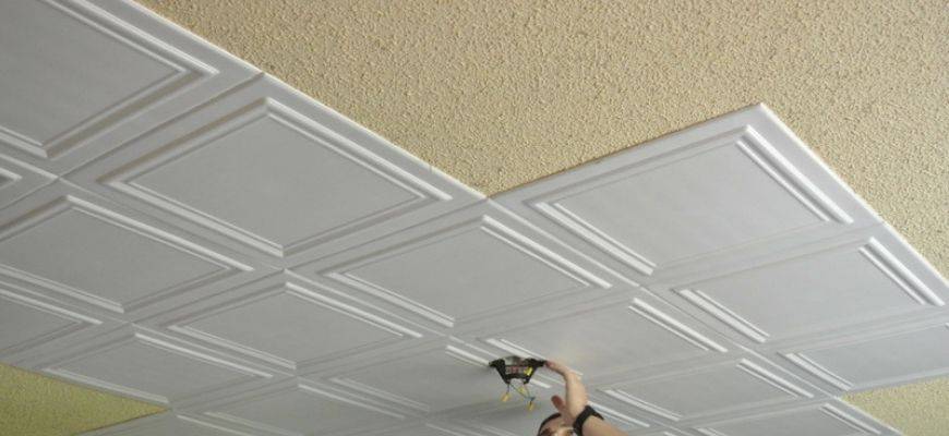 Чтобы закрепить пенополистирол, потолок предварительно выравнивают. Небольшие дефекты и перепады высот плитка скроет, но с масштабными не справится.