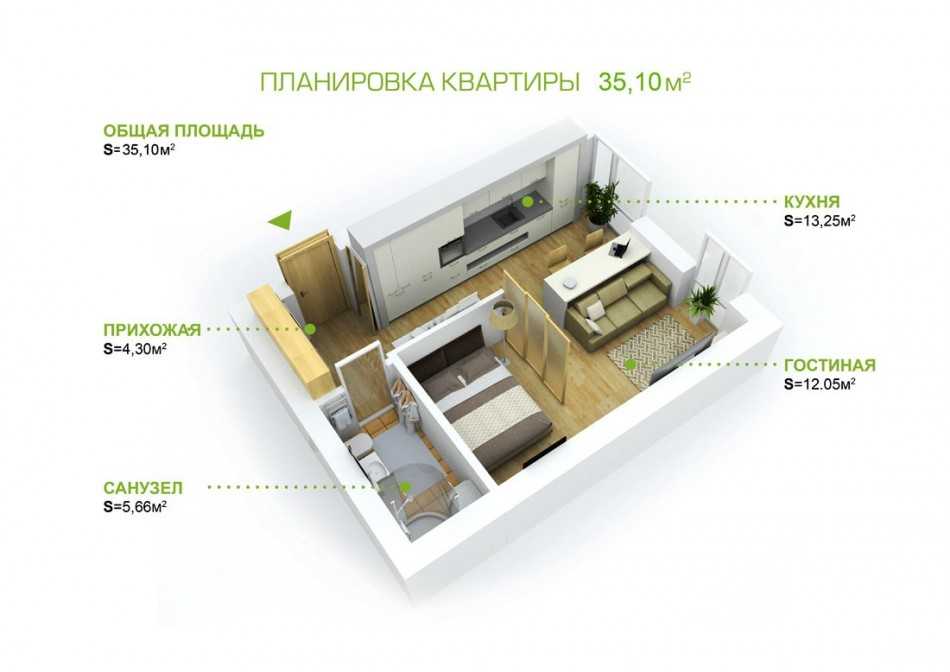 Проект квартиры студии с кухней подразумевает соблюдение некоторых правил: