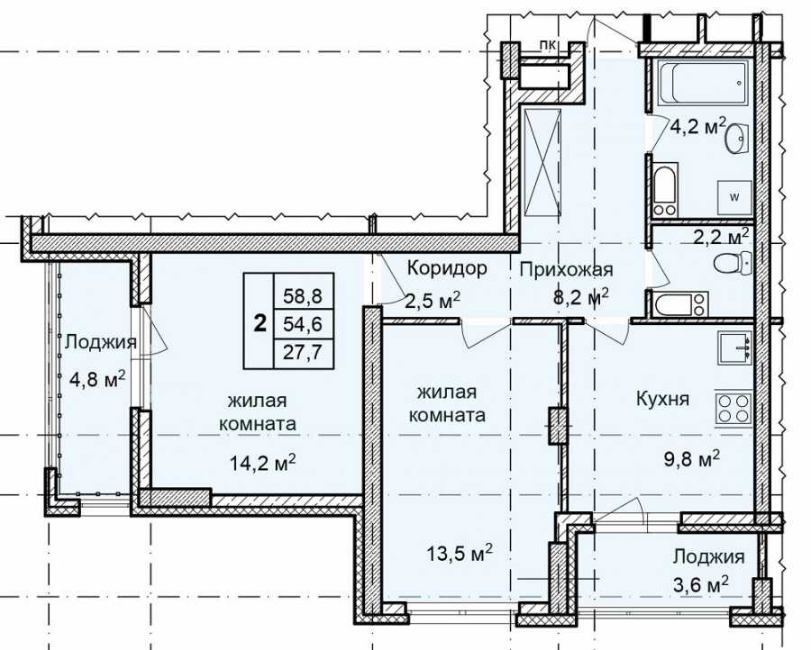 - В качестве разновидности такой планировки остались квартиры гостиничного типа – крохотные, с общей площадью 12 — 18 кв. м.
