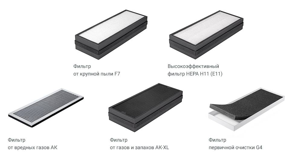 в приточных установках возможно использование любого набора фильтров, который позволит осуществить фильтрацию до необходимого уровня, что особенно важно в загрязненных современных городах.