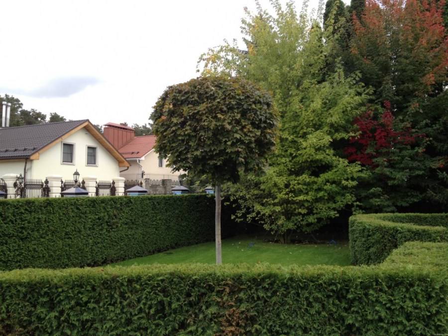 - Лиственные – их используют, чтобы создать живую оригинальную ограду дачного участка, которая будет выгодно отличаться от изгороди соседнего надела. Ее необходимо периодически обрезать. Заграждение получается плотным, с красивой кроной. Но через ограду может на участок проникнуть вор.