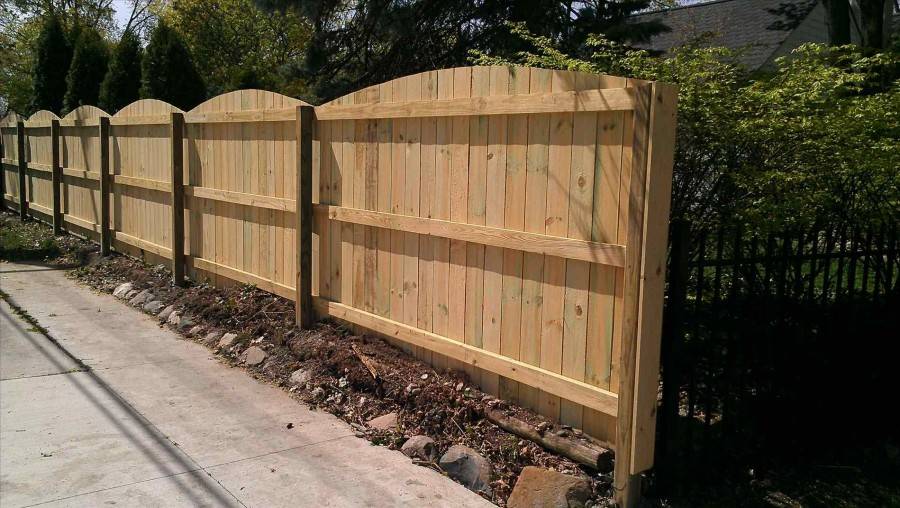 Для ее монтажа используют разные варианты штакетника, частокол и стандартное ограждение. Отличительная черта вида – лицевая сторона с обеих сторон. Чтобы скрыть участок от соседей, используют широкие доски при монтаже заграждения.