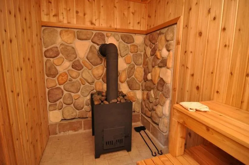 Каменная печь в бане из брусаИсточник stroisovet.com