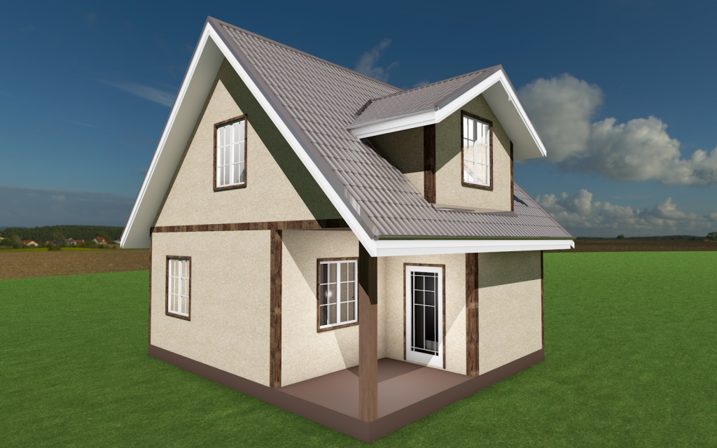 Одноэтажный дом с 2 комнатами отлично подойдет для молодой семейной пары. Мансарда может выступать как жилым помещением, так и кладовкой для хранения вещей. Цоколя и гаража нет, зато есть закрытая веранда. Она может быть отличным местом для семейного ужина. Окна больше и металлопластиковые. Кровля двухскатная, выполненная из битумной черепицы.