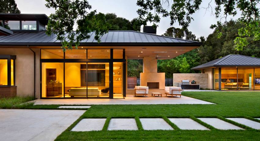 Энергоэффективные жилые дома вполне могут быть необычными по исполнению и красивыми на вид. В ряде случаев их оснащают сауной и бассейном; за счет других дополнений можно легко сформировать практически полноценный домашний фитнес-зал. Вполне целесообразно строить 3-этажные здания. В одном из таких вариантов общие размеры составляют 13,6х13,2 м. Есть 4 спальни и 7 жилых комнат.