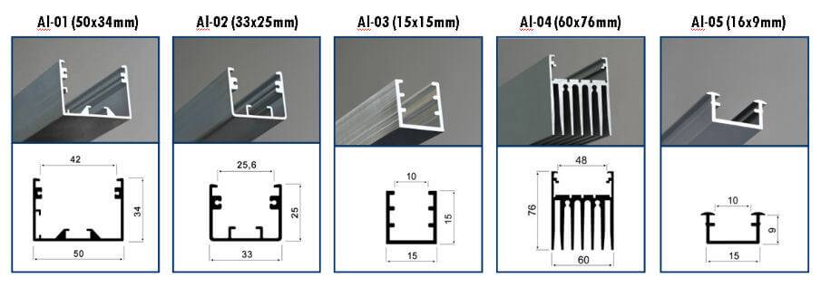 Для монтажа светодиодной ленты можно использовать три основных вида алюминиевого профиля: