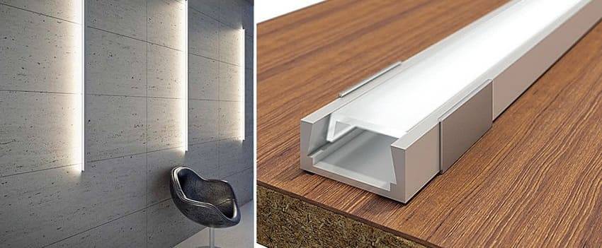 Экраны для рассеивания света светодиодной ленты бывают двух видов: