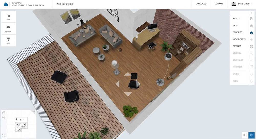 Компания-разработчик славится профессиональными программами по 3D-графике, однако воспользоваться ними могут лишь освоившие 3ds max. Согласитесь, вникать во все перипетии науки, лишь ради того, чтобы взглянуть, как будет смотреться комната после косметической отделки или при перестановке мебели смысла нет, поэтому интересующимся архитектурными программами обывателям и был предложен упрощенный вариант работающего в браузере 3D редактора – Autodesk Homestyler.