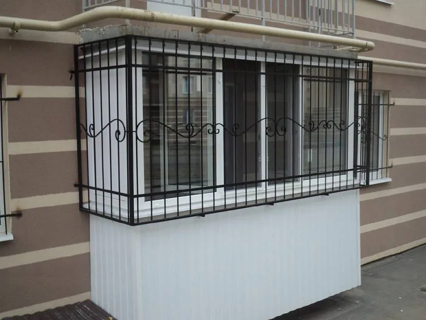 Вопросы отделки балконов, пристраиваемых на первом этаже, важны не только с эстетической точки зрения, но особенно — с позиции безопасности членов семьи. Будучи словно «на ладони», не стоит увлекаться панорамным или витражным остеклением. В качестве надежной защиты можно использовать прочные кованые решетки, удачным решением станет монтаж системы сигнализации.