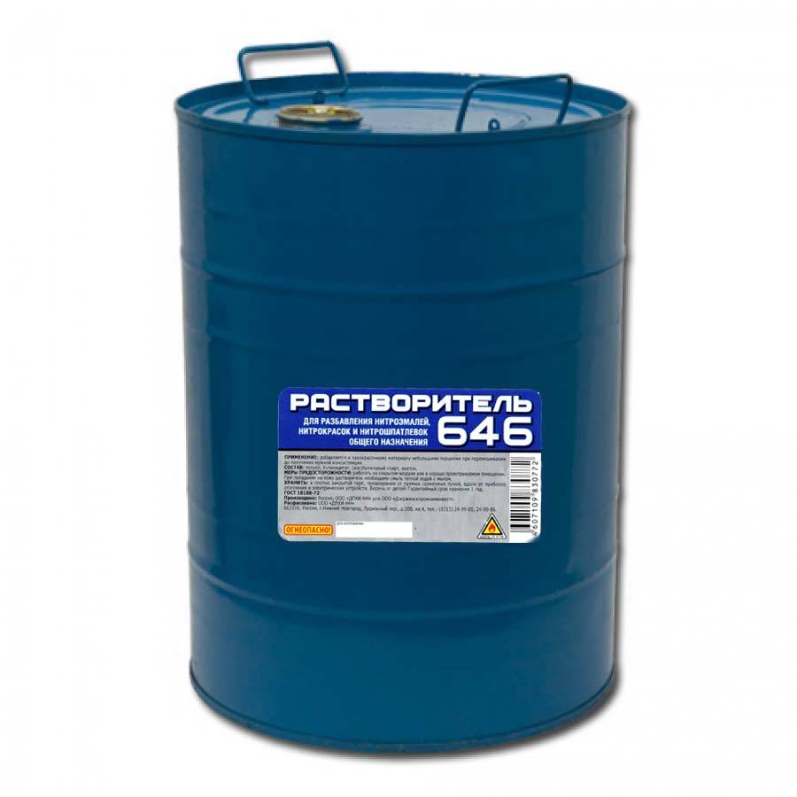 Растворитель 646 – это многокомпонентный растворитель, представляющий собой смесь следующих органических растворителей: спиртов, ароматических углеводородов, эфиров и кетонов. Что касается назначения данного растворителя, то он используется для быстрого и качественного разбавления глифталевых, акриловых, нитроцеллюлозных и эпоксидных ЛКМ. В некоторых случаях растворитель 646 применяется для разбавления шпатлевок.