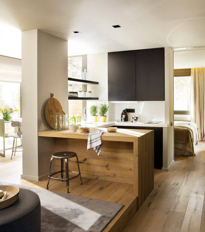 В кухне «остаток» стены можно не убирать, а использовать как барную стойку