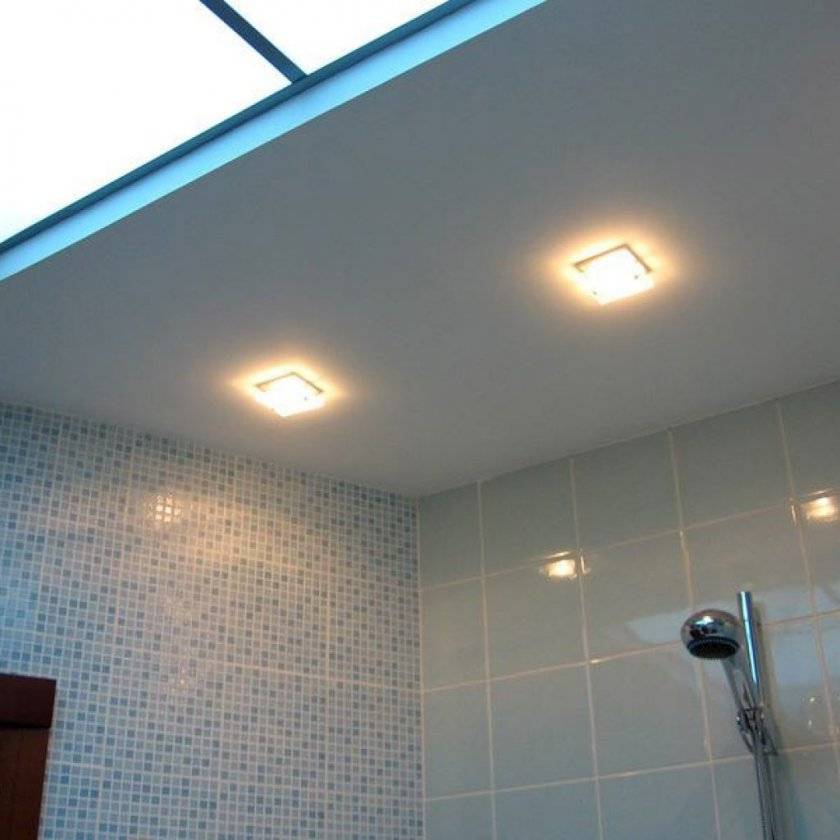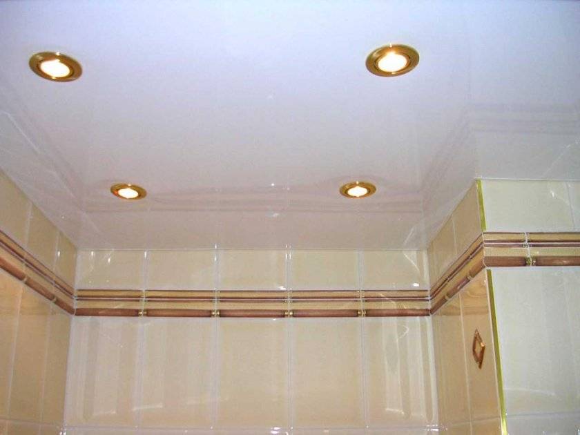 При ремонте потолка стоит отталкиваться от материалов, которые использовали на стенах. Так, например, с кафелем и пластиком очень красиво смотрится эластичная виниловая пленка.
