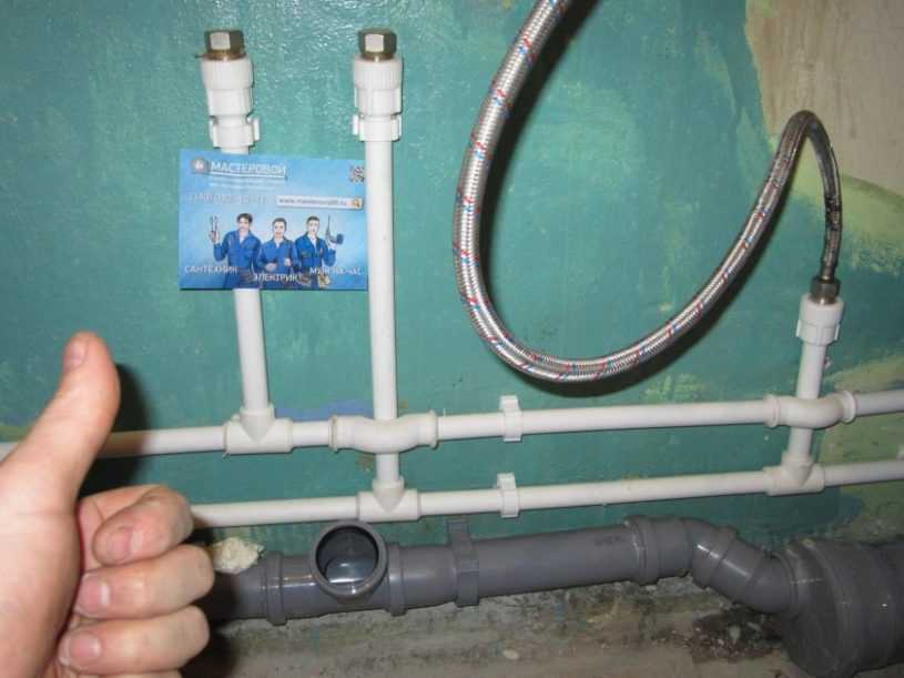 Старые трубы необходимо аккуратно срезать, а потом установить новые при помощи соответствующего крепления. Специалисты рекомендуют оставлять коммуникации открытыми. Если же вы хотите спрятать их в стену, как это часто встречается на фото, то предварительно подготовьте слив для стиральной машины. Также на трубах стоит сделать краны, с помощью которых вы сможете при необходимости перекрыть воду.