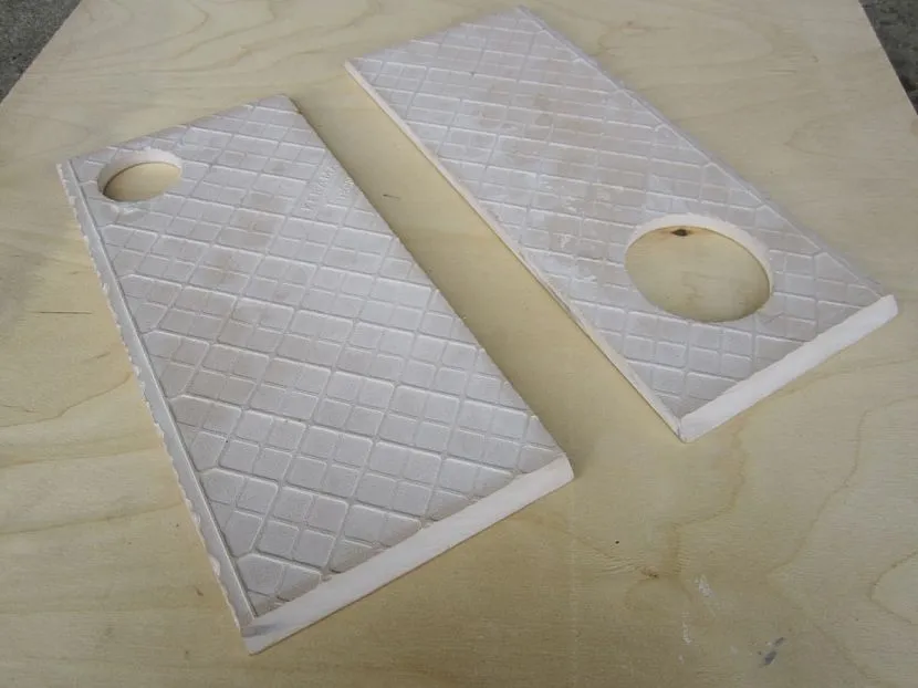 - Положите плитку таким образом, чтобы оказалась на краю основания, а одна из частей была на весу.