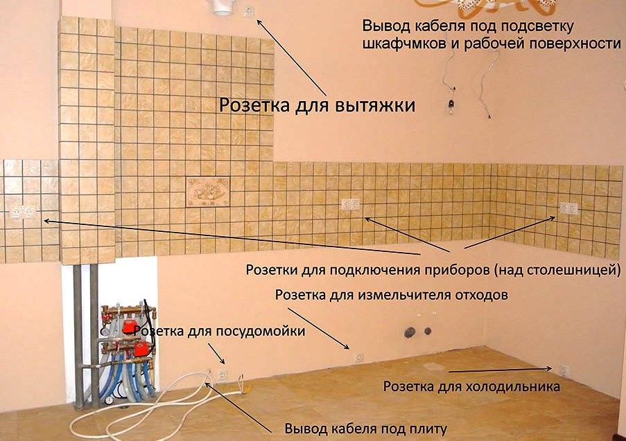 Правила расположения розеток на кухне: фото, схемы и рекомендации