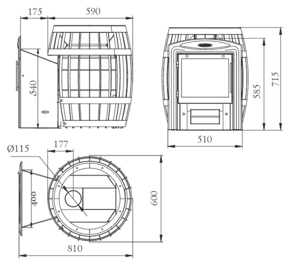 Предложенная модель печного оборудования универсальна: она может функционировать в режиме как непрерывной топки, так и периодического действия. Когда печь с закрытой каменкой работает в условиях постоянной закладки дров, то масса камней уменьшается вдвое.
