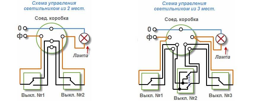 Как работает схема подключения для проходного выключателя при управлении светом из двух мест