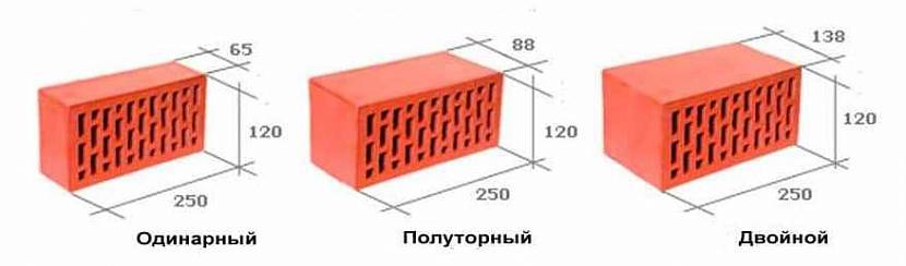 Различают одинарный, двойной и полуторный кирпич, размеры каждого типа рассмотрим ниже.