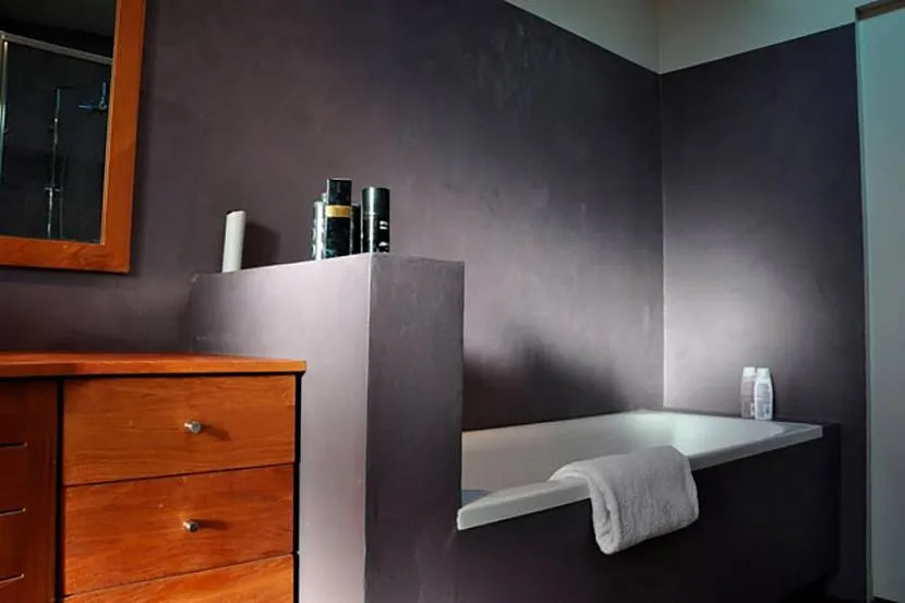 Фактурная штукатурка в ванной – это эстетично и изысканоИсточник yellowhome.ru