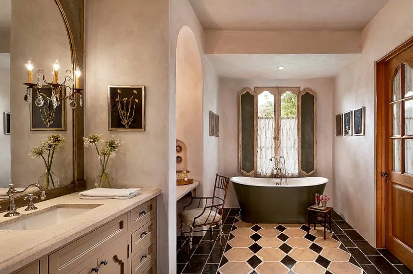 Сочетание венецианской штукатурки с напольным покрытием и ваннойИсточник avatars.mds.yandex.net
