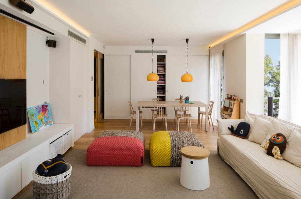 Этот вариант, пожалуй, отлично вписался бы в интерьер любой шведской или норвежской квартиры. Скандинавский стиль в действии, с поправкой на некоторые аспекты нашего сурового квартирного интерьера.