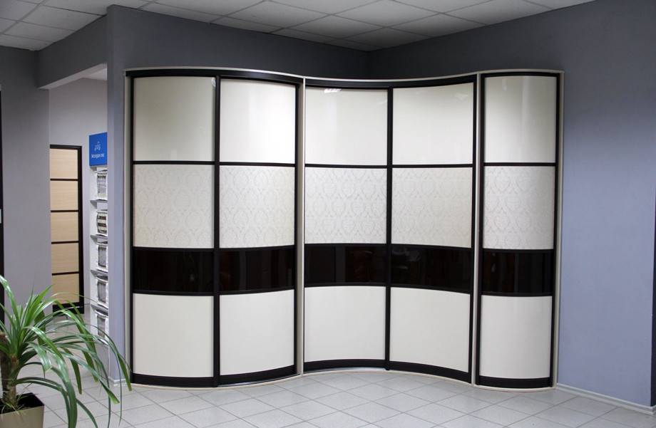 - Комбинированный. Шкаф, который подойдет для любой комнаты. Направляющие профили могут иметь волнообразную форму.