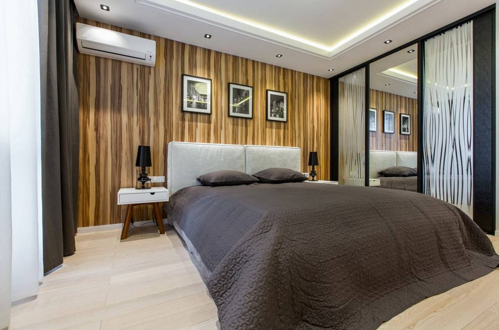 Позволяет применять при изготовлении корпусов и дверей разнообразные высокотехнологичные материалы, способствующие созданию выразительного дизайна спальной комнаты. Зеркальное полотно, часто используемое для декорирования раздвижных дверей, способствует зрительному расширению пространства помещения.