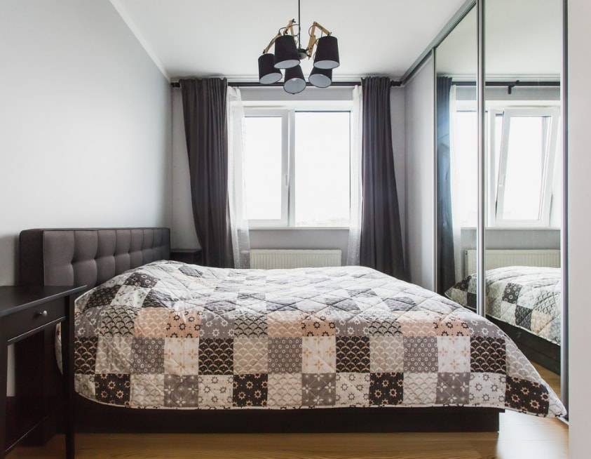 Не менее часто для спальни выбирают шкаф-купе с зеркалами, чтобы зрительно увеличить пространство. Впрочем, не всем по вкусу такой вариант, поэтому предлагаем присмотреться к матовым или глянцевым вариантам нейтральных оттенков. Они хорошо дополнят интерьер и не будут излишне выделяться.