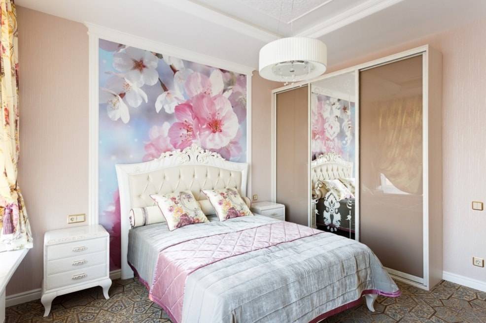 Любителям классики понравятся объемные цветочные узоры. В целом, в строгую классику вписать шкаф-купе достаточно сложно – это атрибут современности. Он больше подходит для смешанного стиля: на стыке классики и модерна.