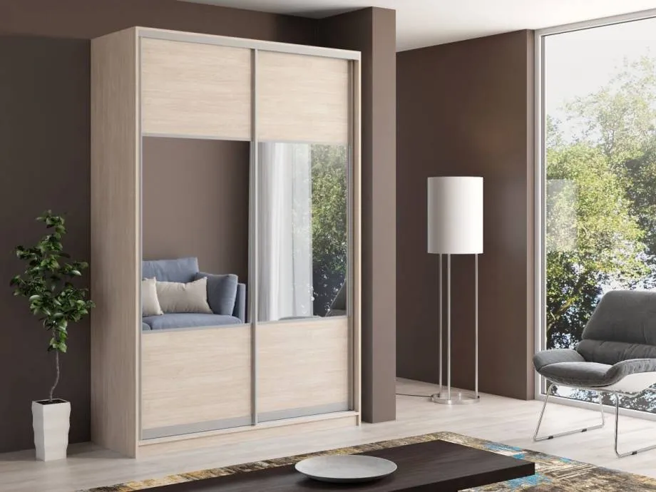 Шкаф-купе представляет собой короб с полками, задней стенкой, ящиками, перекладинами для вешалок и раздвижными дверьми. Именно раздвижная система делает эту мебель популярной и отличающейся от других. Она позволяет сэкономить пространство.