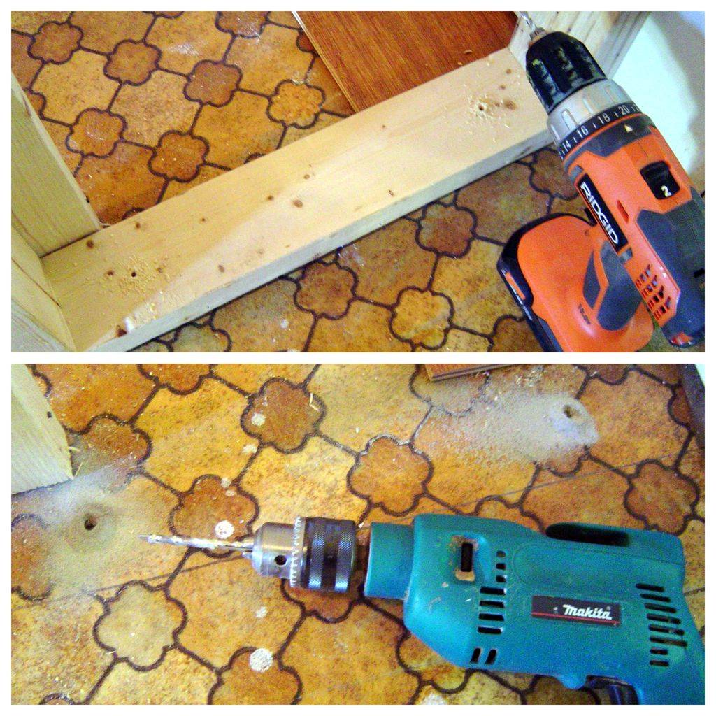 - Сделал в днище отверстия, в которые установил анкера для закрепления планок.