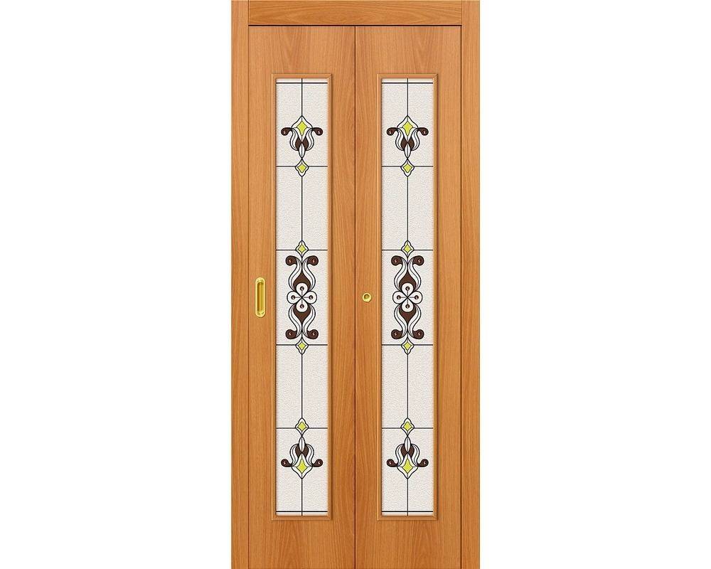 Стекло на двухсекционных «книжках» может начинаться как от пола, так и с верхней половины конструкции. При необходимости, вставка разделяется декоративными раскладками, образуя отдельные сегменты.