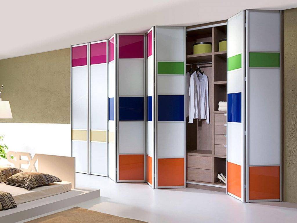 При установке складных секционных конструкций в современных интерьерах, применяются глянцевые или матовые, ламинированные или эмалированные поверхности, в зависимости от материала дверей. Цветовое решение может быть выполнено в красных, синих, зелёных, жёлтых и других тонах, в соответствии с ассортиментом оттенков, представленных конкретным производителем в каталоге.