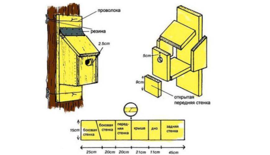 Решая, как построить скворечник своими руками, размеры нужно подбирать тщательно, так как они имеют важное значение для здоровья и безопасности птиц. В большой и просторной «квартире» они откладывают много яиц, но потом не могут прокормить своё многочисленное потомство. Птенцы, недополучая корм, вырастают слабыми, неспособными пережить зиму или совершить дальний перелёт в южные страны