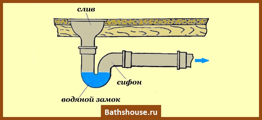 Распространение зловонного запаха там, где есть канализация – не редкое явление. Избавиться от него помогает установка гидрозатвора. Конструкция представляет собой импровизированную водную пробку, которая всегда находится в полости трубы, даже в те периоды, когда баней временно не пользуются.