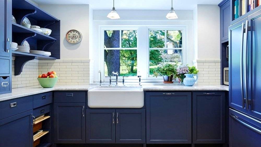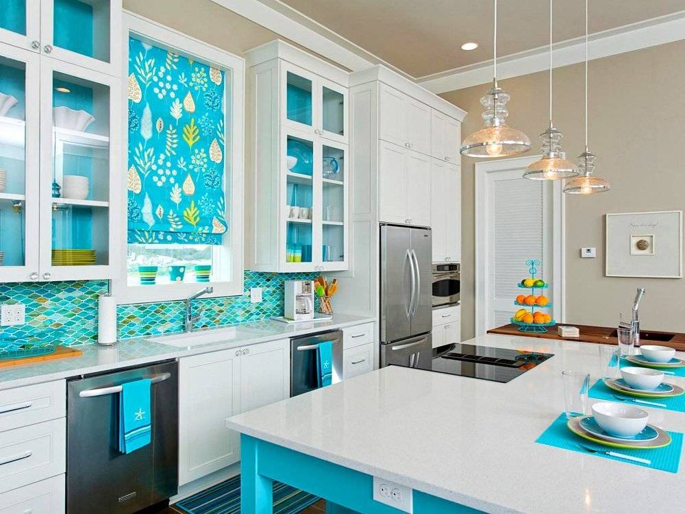В таких интерьерах можно сочетать множество оттенков от белого и бежевого до темно-коричневого или от светло-голубого до насыщенного синего. Кухни получаются цветными и не выглядят скучно.
