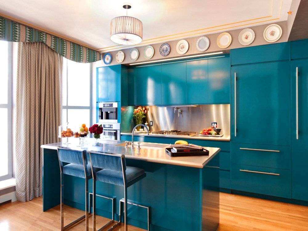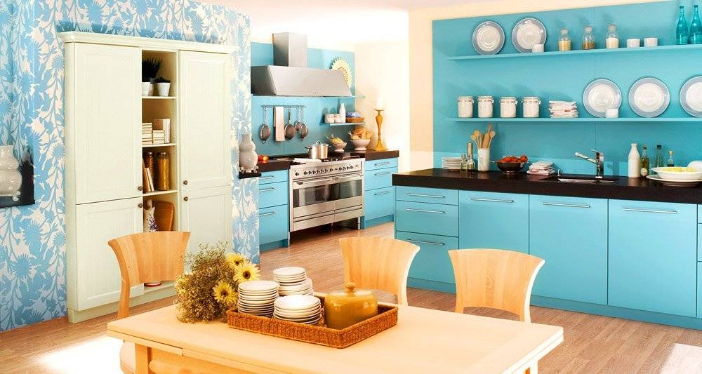 Но сочетать цвета в интерьере кухни нужно с осторожностью, чтобы эффект не получился слишком кричащим выберите один цвет основным, а с помощью второго расставьте яркие акценты. От яркости базового цвета зависит финальный результат — чем он спокойнее, тем спокойнее получится кухня