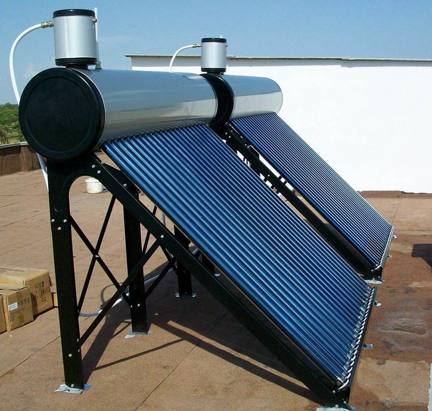 В хороший солнечный день, такой коллектор может нагреть до 200 литров воды. Коллекторы с встроенным баком работают без давления, поэтому монтаж производят в наивысшей точке — крыша дома. Делается этого чтобы обеспечить необходимый напор воды.