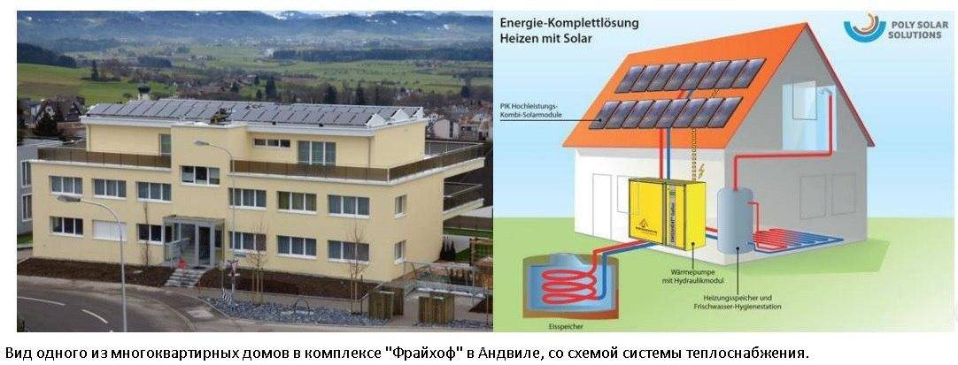 Варианты реализации отопления и горячего водоснабжения могут быть различными. Но, если систему планируется использовать зимой в средних широтах, то стабильно работать она будет только в связке с существующей системой отопления, дополняя или дублируя её. Например, можно реализовать систему теплый пол от солнечных батарей, а основную систему отопления радиаторами, сделать с помощью газовых или электрических ТЭНов. В холодные периоды температуру в доме всегда можно поддержать обычной системой отопления.