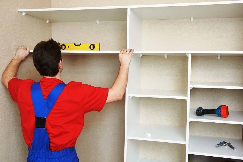 При установке поперечных перекрытий шкафа-купе лучше использовать строительный уровень