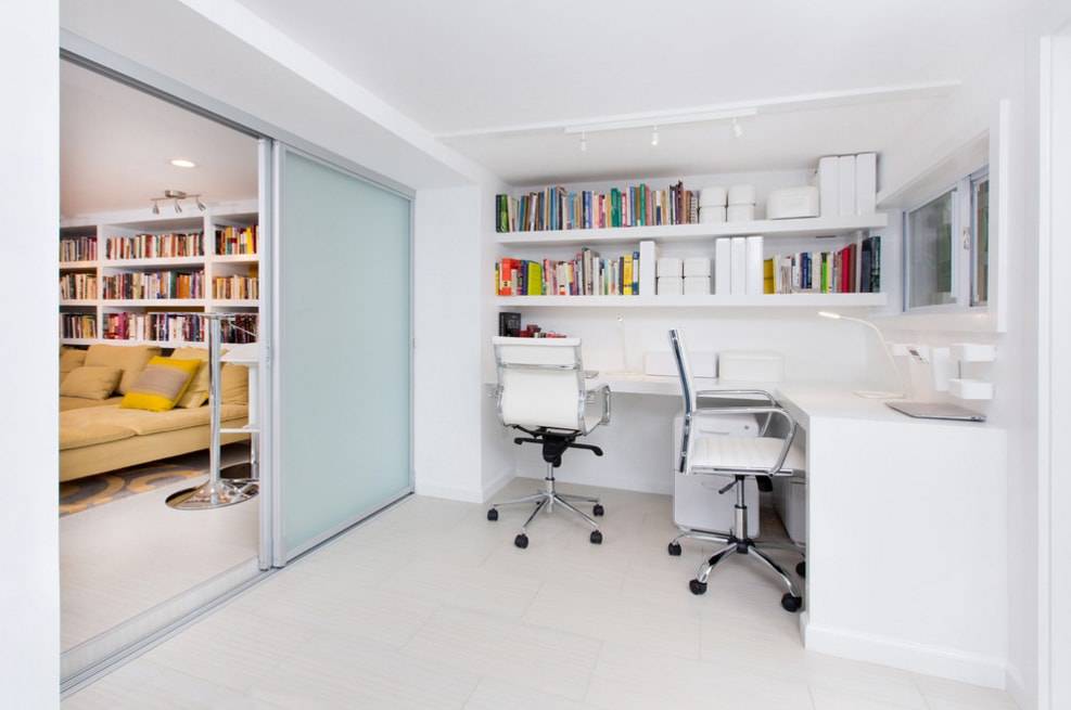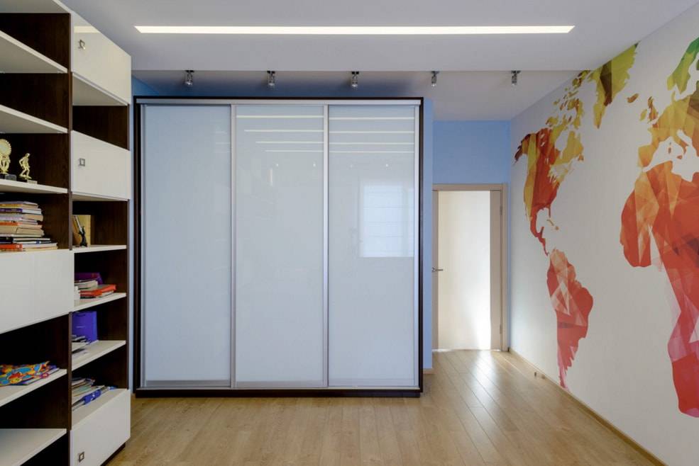 Когда в комнате есть ниша или углубление на месте присоединенного балкона, смело устанавливай туда встроенный шкаф-купе. Его особенность в том, что часть стенок занимает непосредственно гипсокартонный короб или стена комнаты. Это не столько экономия места и материалов, сколько возможность идеально миллиметр в миллиметр подогнать все размеры вообще без щелей. Именно такой шкаф-купе в результате максимально незаметен, особенно если покрасить фасад в цвет стен.