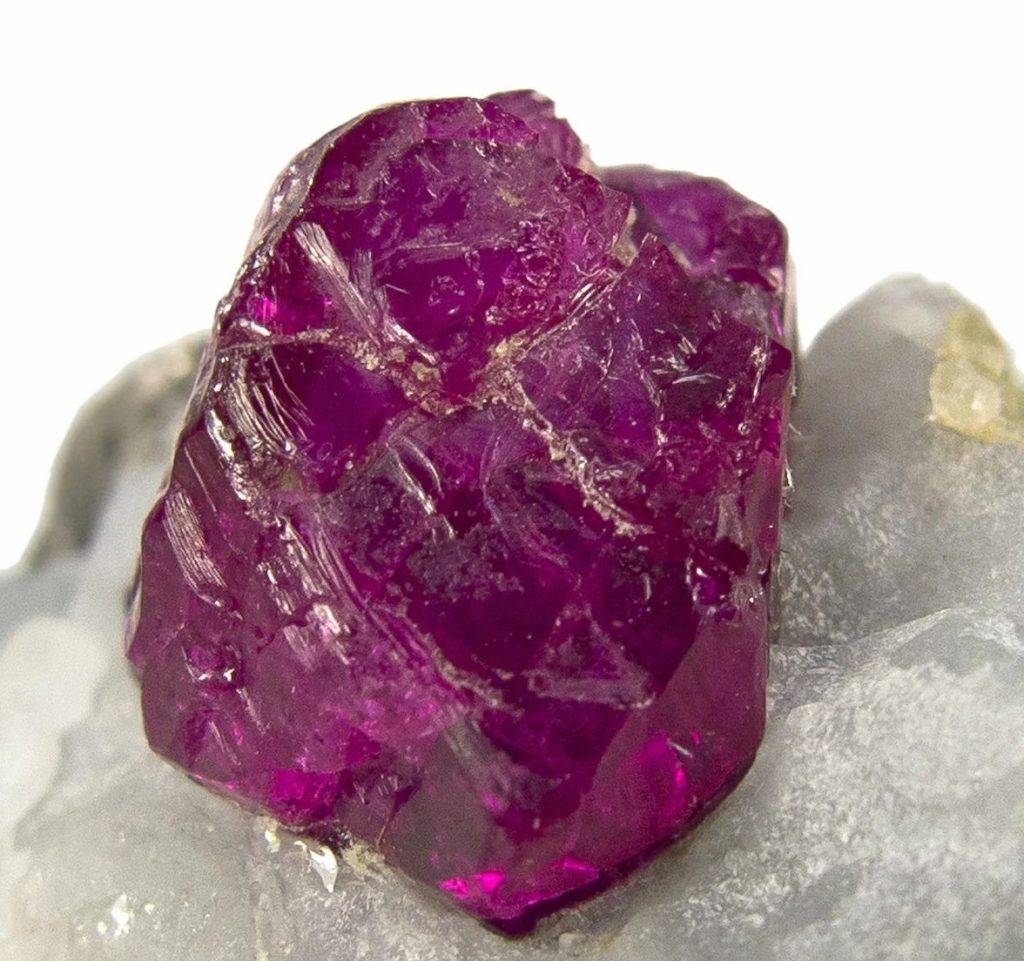 Рубином называется красный корунд. Натуральный и синтетический самоцвет имеет одинаковую формулу Al2O3, а его цвет связан с ионами хрома. Физические свойства также не отличаются. Искусственный рубин имеет твердость 9: он может оставить след на топазе, кварце, а оставить след на нем способен лишь алмаз.