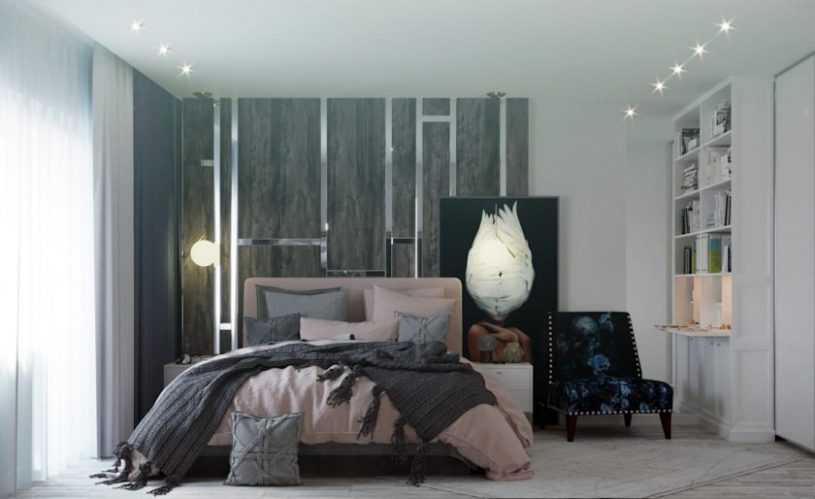 Нередко спальню совмещают с кабинетом, при этом важно обособить функционал обеих зон, чтобы работу не смешивать с отдыхом