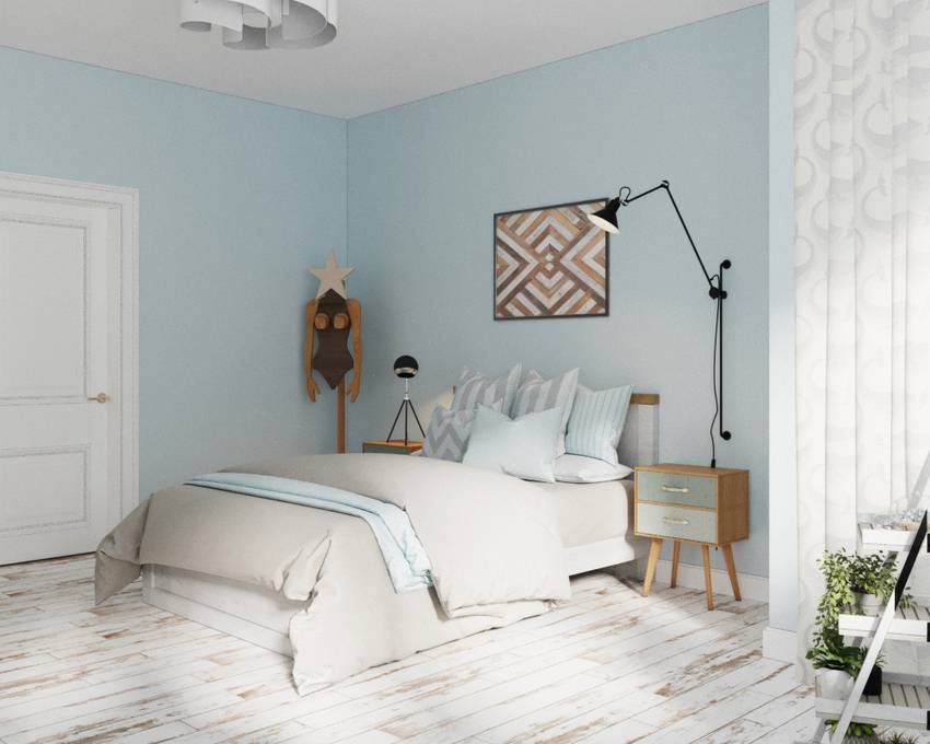 Этот цвет успокаивает, придает ощущение спокойствия, безмятежности и доверия. Поэтому отлично подходит для оформления спальни.