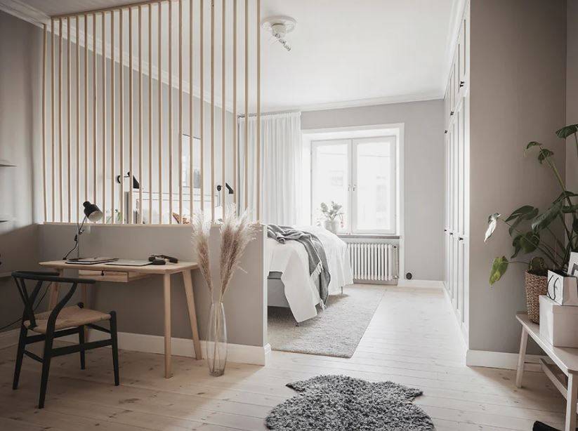 Функциональность, лежащая в основе нордического дизайна, положила начало процессу эффективного совмещения ночной спальной зоны с местом для работы.