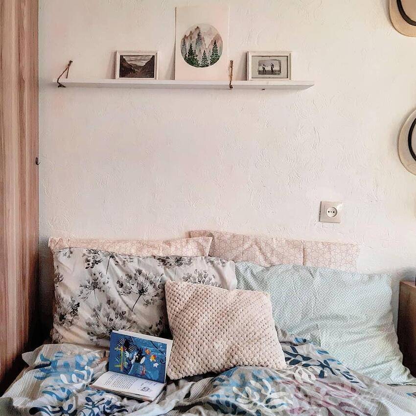 - Яркие акценты в виде декоративных подушек, картины. Акцентов должно быть не слишком много, только чтобы подчеркнуть спокойные основные тона.