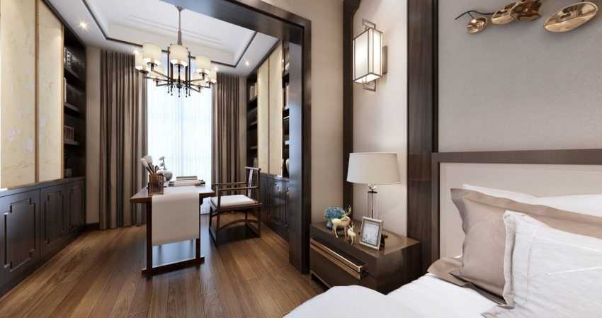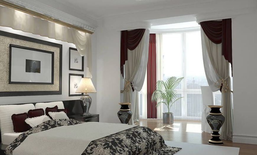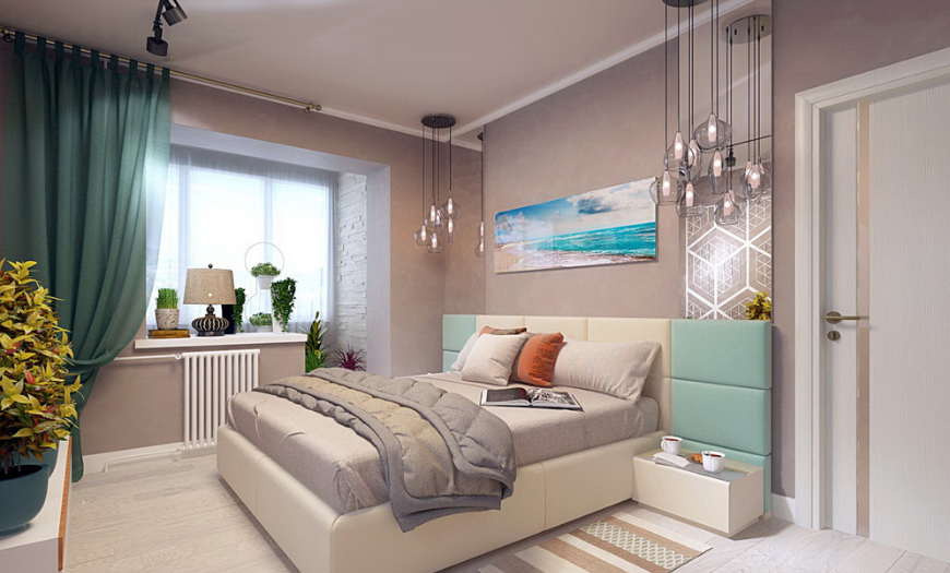 При наличии балкона в спальне рекомендуется его утеплить и объединить с основным помещением. Дополнительную площадь можно приспособить под зимний сад, рабочий кабинет или гардеробную. Для зонирования пространства используйте подоконную тумбу: поставьте на нее горшочные растения и ночник.