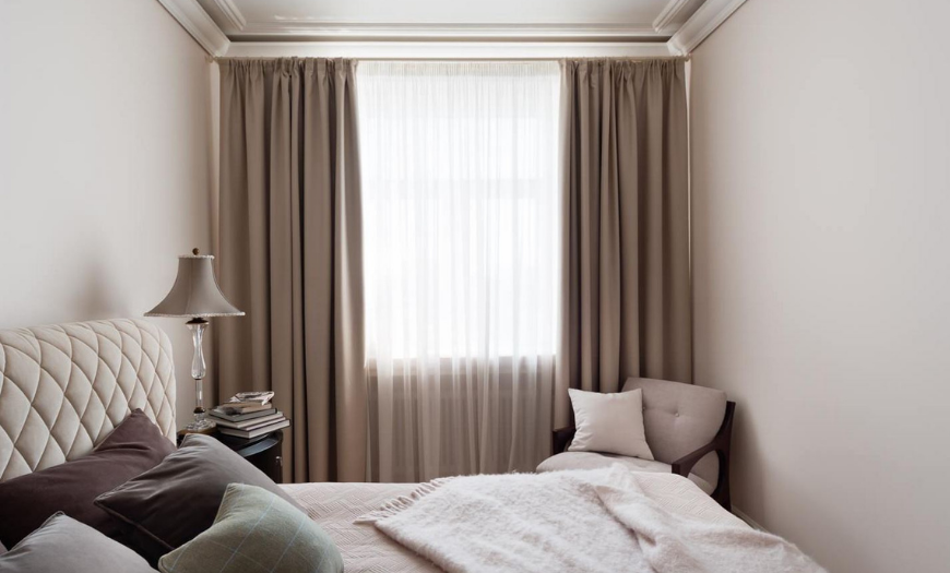 Лучше всего в современную спальню подойдут самые простые и практичные римские шторы либо любые другие роллеты. Они крепятся на весь оконный проем или непосредственно на створку, так что не загромождают пространство и не собирают пыль. Если любишь спать в полной темноте, без раздумий выбирай подкладку блэкаут.