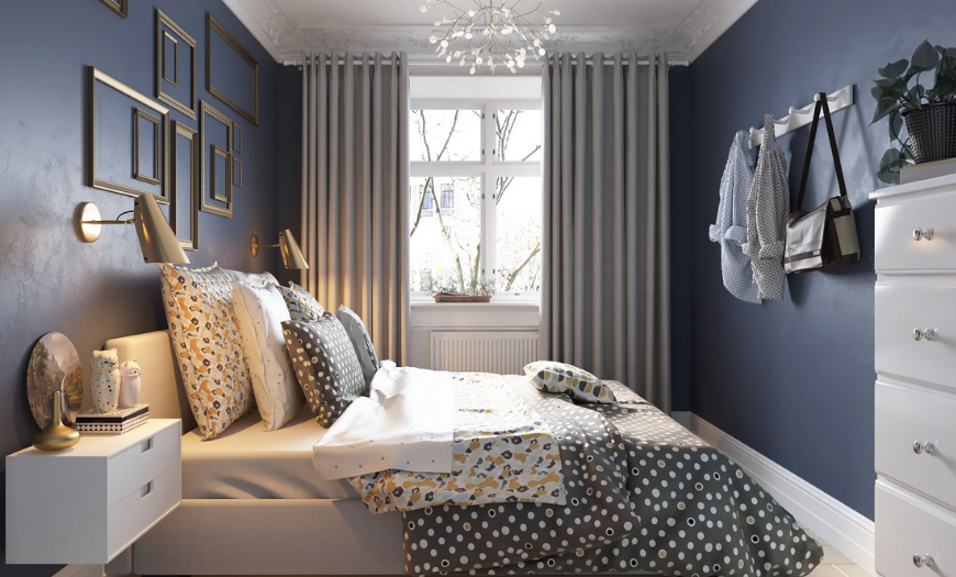 Стиль «минимализм» – это лучшее решение для маленьких спален. Он лаконичен, прост и не перегружен лишней мебелью, что визуально расширяет комнату, делает её светлой и просторной.